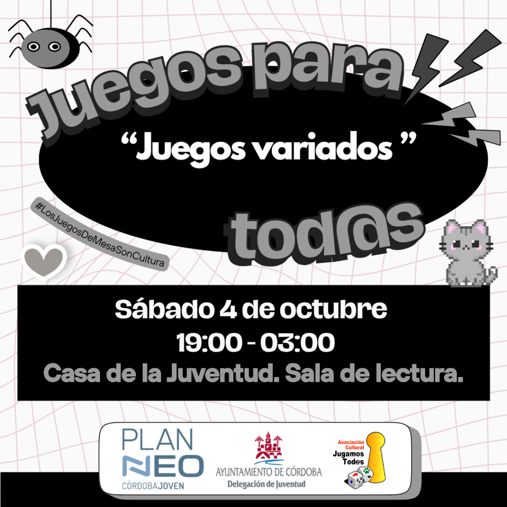 Este sábado 4 de octubre estaremos en la Casa de la Juventud en nuestra habitual actividad de juegos desde las 19:00h hasta las 03:00h.