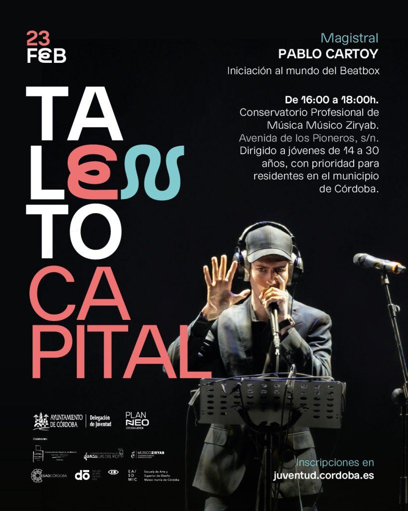 El beatboxer Pablo Cartoy, actual Campeón de España de Loopstation 2026, impartirá una magistral en Talento Capital para explicar a los y las jóvenes que se inscriban, su experiencia en el mundo del beatbox.
