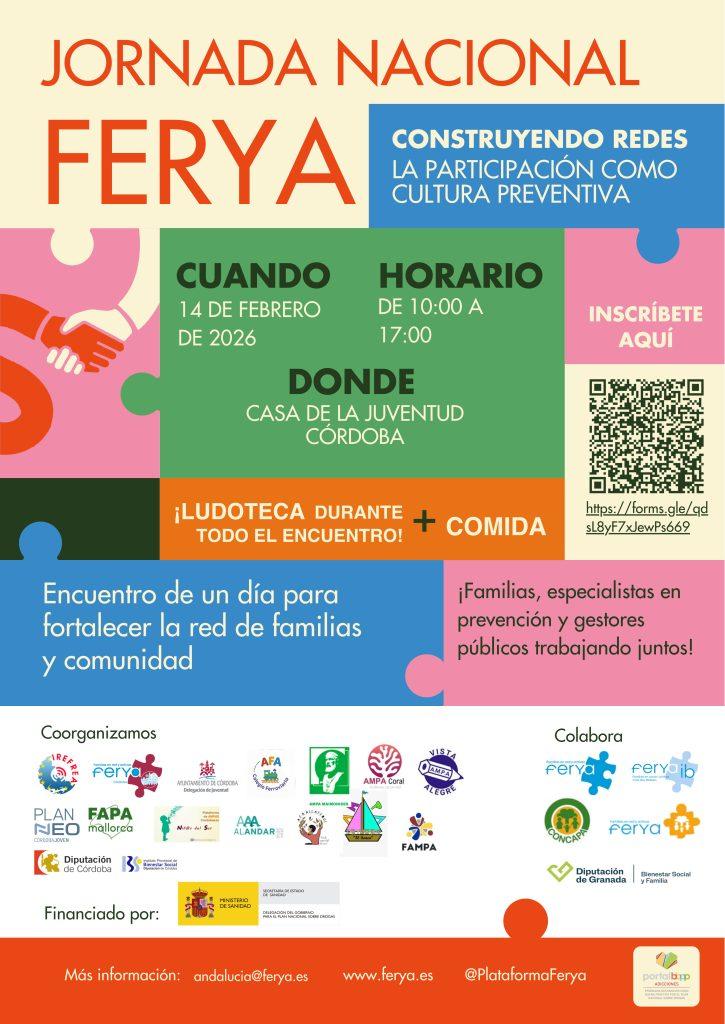 Esta jornada se hace posible gracias al trabajo colaborativo de FERYA Córdoba (Familias en Red y Activas) IREFREA (Instituto Europeo de Estudios de Prevención), IPBS (Instituto Provincial de Bienestar Social de Córdoba), FAPA Mallorca y el Ayuntamiento de Córdoba (a través de su Delegación de Juventud), además de contar con la colaboración de muchísimas más entidades.