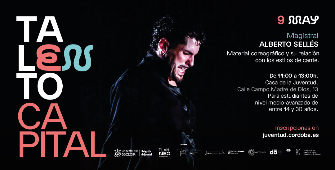 Alberto Sellés ofrecerá la magistral “Material coreográfico y su relación con los estilos de cante” el próximo 9 de mayo en la Casa de la Juventud dentro de la programación de Talento Capital, el programa que pretende contribuir a la profesionalización del talento joven de Córdoba.